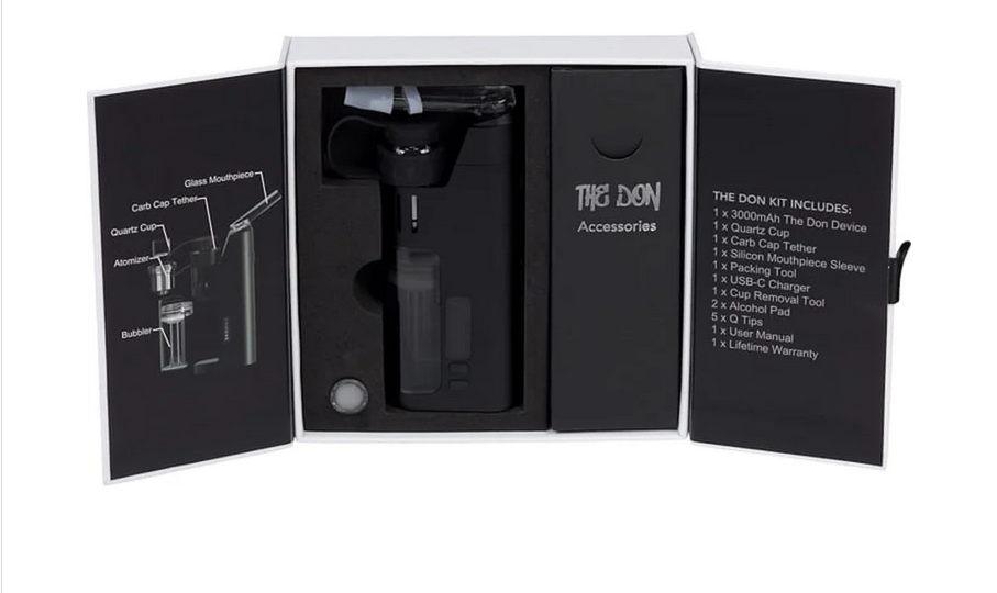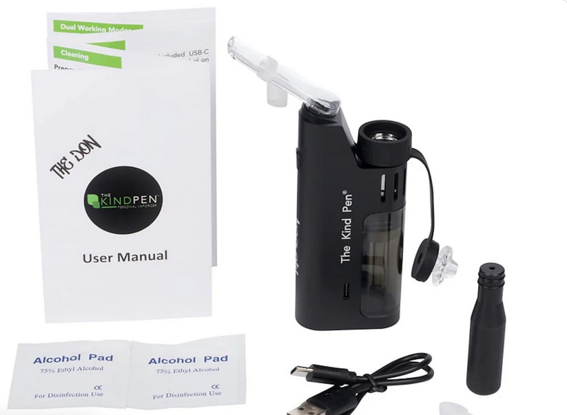Introducing The Don E-rig from Kind Pen, a dual-use vaporizer for wax and oils with a large battery, discreet dabbing, temperature adjustment, built-in water bubbler, and potent performance. Enjoy a luxe dabbing experience with this must have vape!