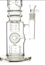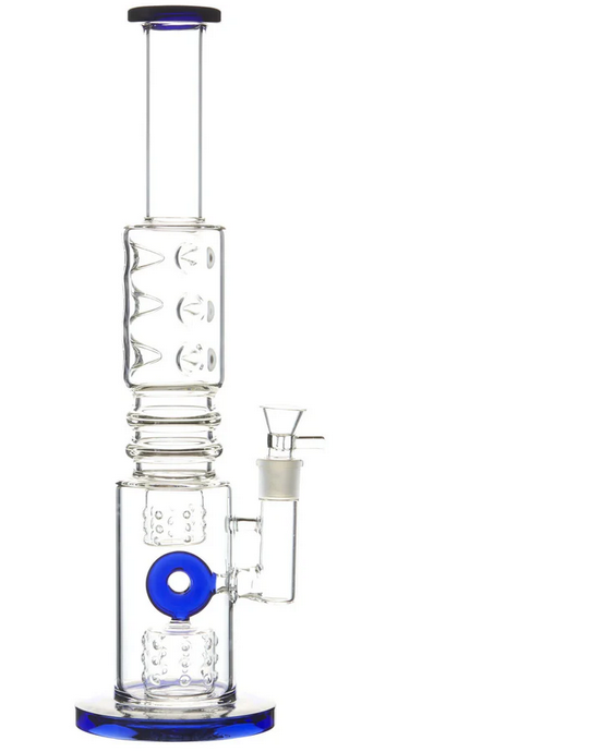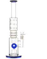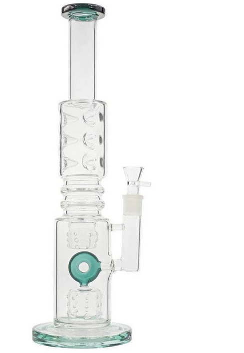 The percs are not only fully functioning parts of this bong’s filtration system, they add an intricate look that’s sure to catch your friends’ attention when they see it. The clear glass lets you watch the percs in action, while the blue-green base, mouthpiece, and donut-shaped downstem add a dash of color. With this piece, you can get the giant hits you want from a 17 inch bong, with a shocking silky smoothness that will make you shout “Oh My Bong!”