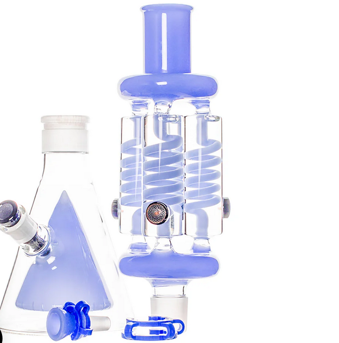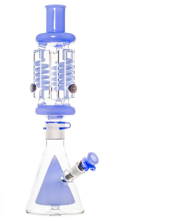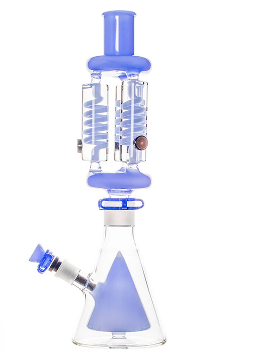 Cool off with some ultra filtrated and chilled hits. The Triple Helix Glyco bong features three freezable glycerin filled coils. The Cone percolator will soften up the bong smoke while the chilled coils make your bong rip a refreshing experience. This bong stands at 19″, making it into our huge bong collection! This beaker style water bong comes with a 14mm male bowl and downstem.